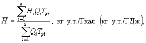 Qбр - количество тепла, выработанного на данном уровне планирования, Гкал/период (ГДж/период). 1.3.12. Средневзвешенную норму расхода топлива на выработку тепловой энергии при использовании на данном уровне планирования нескольких видов топлива определяют по формуле: