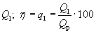 1.5.3. По результатам проведения наладочных работ строится график зависимости КПД котла (h) от тепловой производительности (Q), как указывалось в п. 1.1.7. Область экономичной работы котла определяется наложением на этот график h = f(Qi) прямой, соответствующей значению нормативного удельного расхода, приведенного в Приложении 1. Проекция точек их пересечения на ось Qi определит область экономичной работы котла. 1.5.4. Определение КПД производят, как правило, по обратному тепловому балансу: h = 100 - (q2 + q3 + q5), %, (1.16) где q2 и q3 - потери тепла с уходящими газами и с химической неполнотой сгорания, %; q5 - потери тепла в окружающую среду, %. Составляющие теплового баланса определяются, например, по [6]. Возможно также проведение наладочных работ с использованием прямого баланса, уравнение которого записывают следующим образом: Qр = Q1 + Q2 + Q3 + Q5, ккал/м3 (1.17) или 100 = q1 + q2 + q3 + q5, %, (1.18) где Qр - располагаемое тепло (полное количество тепла, вводимого в топку) на 1 м3 топлива;