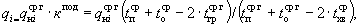 где qпi, qоi - нормы плотности теплового потока через изолированную поверхность подающего и обратного трубопроводов, Вт/м (ккал/м·ч), принимаются по табл. 2.2 - 2.5 в зависимости от вида прокладки теплопроводов; lпi, lоi - протяженность i-x участков трубопроводов соответственно подающей и обратной линии, м; Z - длительность работы тепловых сетей, сут., в течение рассматриваемого периода (месяц, квартал, год и др.); 24 - число часов в сутках; 3,6 - соотношение между единицами измерения Вт·ч и кДж (1 Вт·ч = 3,6·кДж); b - коэффициент, учитывающий потери тепла опорами, арматурой, компенсаторами, принимают равным 1,15 для бесканальной прокладки, 1,2 в тоннелях и каналах, 1,25 при надземной прокладке; n - количество участков тепловой сети. При значениях средних температур грунта и теплоносителя за планируемый период, отличных от среднегодовых, принятых при расчете норм плотности теплового потока, производят пересчет по формулам: для участков двухтрубной прокладки подземных трубопроводов где qi - суммарная норма плотности теплового потока через изолированную поверхность подающего и обратного трубопроводов, Вт/м [ккал/(м·ч)], для усредненных конкретных значений температур грунта и теплоносителя за планируемый период (месяц, квартал, год и др.);