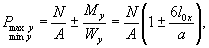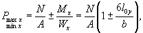 Для прямоугольных (в плане) фундаментов и при положении равнодействующей внутри ядра сечения, т.е. при l0 < r.