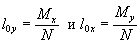 a и b - стороны подошвы фундамента параллельные осям х и у соответственно. Если l0 > Z, т.е. если равнодействующая проходит вне ядра сечения, то давление на грунт передается частью площади. В этом случае, полагая эпюру давления треугольной, найдем из условия равновесия, что сила N должна проходить через центр тяжести эпюры.