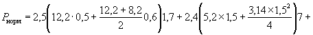 В качестве примера рассмотрим следующие сочетания нагрузок: 1-е сочетание образуют нагрузки, действующие вдоль моста (вес опоры, вес пролетного строения, временная нагрузка на одном пролете, тормозная сила). 2-е сочетание включает нагрузки, действующие поперек моста (вес опоры, вес пролетного строения, ледовую нагрузку, ветровую нагрузку). Предварительно определяем расчетное сопротивление сжатию грунта, суглинка, при R0 = 2,5 кгс/см2 (25 тс/м2), К1 = 0,04, К2 = 2: R = 1,7 {25,0 [l+0,04(4,5-2)] + 2·2(3-3)} = 46,5 тс/м2 = 0,465 МПа. Для 1-го сочетанияΣNнорм = 564,9 + 228,0 + 107,5 + 79,5 = 979,9 тс = 9799 кН, ΣNрасч = 620,0 + 251,0 + 150,0 + 98,6 = 1119,6 тс = 11196 кН, (при γf > 1) ΣМрасч = 98,6·0,325 + 15,8·12,1 = 224,0 тм = 2240 кНм, (при γf > 1) ΣМнорм = 79,5·0,325 + 13,2·12,1 = 185,8 тм = 1858 кНм. Проверка положения равнодействующей внешних сил по нормативным значениям усилий: