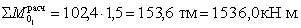 Ррасч = 1,1×564,9 = 620,0 тс = 6200,0 кН (при γf = 1,1), Ррасч = 0,9×564,9 = 509,0 тс = 5090,0 кН (при γf = 0,9) 2) вес балок пролетного строения Pнорм = 38,0×6 = 228,0 тс = 2280, кН, Ррасч = 1,1×228,0 = 251,0 тс =2510,0 кН (при γf = 1,1), Ррасч = 0,9×228,0 = 205,2 тс = 2052,0 кН (при γf = 0,9); 3) вес покрытия проезжей части Pнорм = 0,339 т/м2×24,0×13,2 = 107,5 тс =1075,0 кН, Ррасч = 0,9×1075,0 = 968,0 кН (при γf = 0,9), Ррасч = 0,474×24,0×13,2=150,0 тс = 1500,0 кН (при γf =1,1); 4) вес временной нагрузки A-II + вес толпы на одном пролете Pнорм = 11,7×1,1×1,15(1+0,6)+11(1+0,93)1,15×2+0,352×11,7×2 = 79,5 тс=795,0 кН, Ррасч = 23,6×1,2+47,6×1,27+8,3×1,2 = 98,6 тс =986,0 кН; вес временной нагрузки от НК-80 Pнорм = 6,17×11,7×1,1 = 79,5 тс =795,0 кН, Ррасч = 1,0×795,0 = 795,0 кН; 5) силу торможения Тнорм = 0,5×1,1×24 = 13,2 тс = 132,0 кН, Трасч = 132,0×1,2 = 158,0 кН; 6) ветровую нагрузку на перила - Wнорм = 180×24×1,1×1,3 = 1,43 тс = 14,3 кН, Wрасч = 14,3×1,5 = 2,14 тс =21,4 кН; на балки Wнорм =180×24×1,2 = 5,18 тс = 51,8 кН, Wрасч = 51,8×1,5 = 77,5 кН; на опору Wнорм =180×1,5×7,6 = 2,0 тс =20,0 кН, Wрасч = 20,0×1,5 = 30,0 кН, Wнорм = I4,3 + 51,8 +20,4 = 86,5 кН, Wрасч = 8,65 1,5 = 12,97 тс = 129,7 кН. Момент от ветровой поперечной нагрузки относительно центра тяжести фундамента - 0.