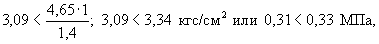 σср = 2,44 кгс/см2 = 0,24 МПа, σmax = 3,09 кгс/см2 = 0,31 МПа, σmin = 1,79 кгс/см2 = 0,18 МПа,