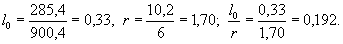 Эксцентриситет приложения равнодействующей вертикальной нагрузки l0 и радиус ядра сечения подошвы фундамента r определяют по формулам
