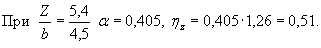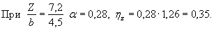 где ΣN - сумма всех нормативных вертикальных постоянных сил, действующих на подошву, фундамента. С глубиной дополнительное давление уменьшается (рассеивается), и на расстоянии Z от подошвы фундамента оно будет ηz = αη, где α - коэффициент рассеивания, зависящий от соотношения сторон a/b подошвы фундамента и отношения Z/b (b - меньшая сторона подошвы). Значения коэффициента α приведены в табл. 7. Таблица 7Коэффициенты рассеивания