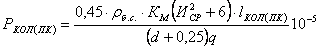 где РПР, PКОЛ(ПК) - потери давления на прямых участках трубопровода и коленах (переходном конусе), МПа; lПР, lКОЛ(ПК) - соответственно длина прямых участков трубопровода и колен (переходного конуса), м; d - диаметр трубопровода, м; ρб.с. - плотность бетонной смеси, кг/м3; КМ - безразмерный коэффициент, учитывающий влияние местных сопротивлений; ИСР - средняя скорость движения бетонной смеси по трубопроводу, м/с