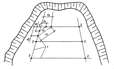 После закрепления осей свайных рядов 1-1 необходимы контрольные промеры точности разбивки между рядами осей свай в продольном и поперечном направлениях, а также по диагонали.