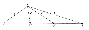 При определении этим способом точек ответственных сооружений, в том числе фундаментов с однорядным расположением свай, необходимо положение искомой точки "С"' определять не двумя, а тремя засечками, например: от опорной точки "А" и от двух створных точек "В’" и "В”" радиусами, равными расчетным расстояниям "а", "в'"и "в''", проводят дуги, в пересечении которых находится искомая точка "С" (см. рис.16).