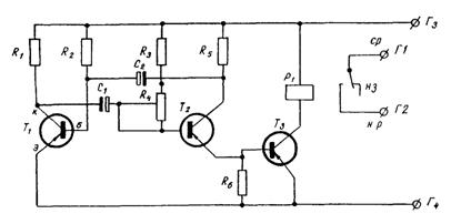 Для правильного измерения потенциала с исключением омической составляющей оптимальная длительность импульса составляет 0,1 - 10 с, оптимальное время прерывания тока 10-4 - 10-5 с. Установки, позволяющие получить оптимальное время прерывания тока, работают на полупроводниковых элементах или электронных лампах и требуют сложных уникальных приборов, которые пока не выпускаются. Тем не менее представление о кинетике коррозионно-электрохимических процессов на поверхности арматуры в бетоне может быть получено при использовании простой электрической схемы (см. рис. 5). Источником импульсного тока в ней является мультивибратор (см. рис. 6), в качестве переключающего устройства служит реле поляризованное. Точность измерений электрохимического потенциала достигается увеличением длительности времени разряда электрохимического конденсатора с помощью дополнительной ёмкости, включенной в измерительную ветвь цепи.