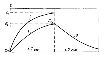 кривой 2. Если после полного заряжения двойного слоя до потенциала Е, выключить поляризующий ток, то