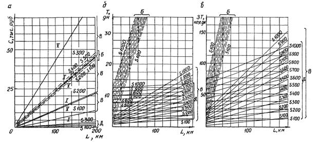 Рис. 4. Области рационального применения способов монтажа и демонтажа зданий а - по сметной стоимости С; б - по продолжительности Т; в - по трудоемкости ЗТ; L - удаленность участка строительства от мест базирования монтажных механизмов; S - объем монтажных работ в м2; Д - грузоподъемные краны при наличии дорог; Б - то же, при отсутствии дорог; В - вертолеты; I-V климатические районы грузоподъемных кранов - при отсутствии дорог и объемах монтажа более 200 - 300 м2. По критерию меньшей продолжительности наиболее экономичным является применение: грузоподъемных кранов при удаленности участка строительства от мест базирования монтажных механизмов более 150 - 210 км ( в зависимости от монтажа); вертолетов - в остальных случаях. По критерию меньшей трудоемкости наиболее экономичным является применение: грузоподъемных кранов - при удаленности участка строительства от мест базирования монтажных механизмов более 175 - 200 км (в зависимости от объемов монтажа); вертолетов - в остальных случаях. Складирование и хранение элементов 2.12. Расположение элементов на транспортных средствах или на приобъектном складе должно соответствовать принятой последовательности монтажа. 2.13. Хранение элементов на приобъектном складе должно производиться в соответствии с требованиями СНиП III-4-80, а именно: площадки складирования должны быть выровнены и иметь уклон для стока атмосферных осадков; элементы должны храниться в положении, близком к проектному; при хранении элементов в штабелях или пакетах их следует располагать на прокладках и подкладках, устанавливаемых в одной вертикальной плоскости. 2.14. Блок-контейнеры следует складировать в один или два яруса. Прокладки между ярусами должны располагаться по периметру блок-контейнеров. Не допускается укладывать прокладки на обшивку, выполненную из профилированного или гладкого стального листа. 2.15. Панели плит перекрытия, покрытия, стен и др. с деревянной обшивкой (серии 420-11 и "Модуль") допускается хранить в горизонтальном положении в пакетах. Панели с обшивкой из стального листа (серии УИЗ) следует держать в наклонном положении в инвентарных кассетах. 2.16. Плоские рамы (серия 223К-ТЗ-78) допускается складировать в штабелях в горизонтальном положении. Расположение прокладок и подкладок - с интервалом не менее 3 м, по длине элементов. Количество рам в штабеле не должно превышать 5 шт. Пространственные трансформируемые рамы (полурамы) марок УСРЗ, БКЗ и др. следует хранить в штабелях в горизонтальном положении. Прокладки и подкладки необходимо располагать у строповочных петель, не допуская их опирания на профилированный стальной лист обшивки. 2.17. Деревянные и металлические линейные элементы (горизонтальные и вертикальные), сваи и т.п. следует складировать в штабелях в горизонтальном положении, располагая подкладки и прокладки с интервалом не менее 3 м. 2.18. Деревянные блоки фундаментов без выступающих анкерных болтов допускается хранить в штабелях без прокладок. Блоки с анкерными болтами и железобетонные - складировать в штабелях на прокладках. Толщина прокладок выбирается с таким расчетом, чтобы расстояние от концов анкерных болтов или строповочных петель до низа вышележащего блока было не менее 20 мм. 2.19. Крепежные детали, материалы для заделки стыков следует хранить в ящиках с плотно закрывающейся крышкой, не допуская их намо