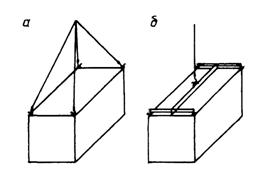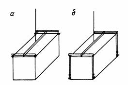 Блок-контейнер размерами 9×3×3 м массой 8 т. Устройства для строповки расположены: по первому варианту - в верхнем поясе, по второму - в нижнем (рис. 2).