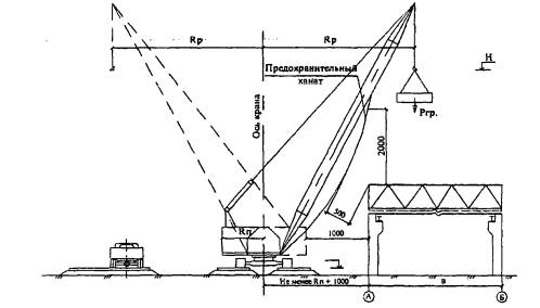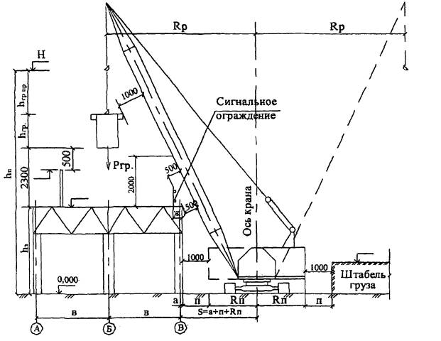 S - расстояние от оси вращения грузоподъемных машин до ближайшей оси здания;