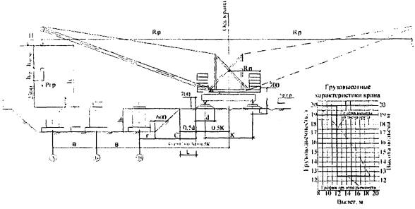 4.15. Привязка стреловых кранов, подъемников (вышек), кранов-манипуляторов, устанавливаемых у откоса котлована (выемки) или траншеи, к оси здания (сооружения) в соответствии с рисунком 8 определяется по формуле: