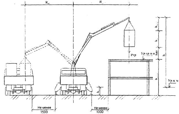 Примечание - При привязке грузоподъемных машин у зданий или сооружений, имеющих подвалы согласно рисунку 9, необходимо учитывать требования п. 4.4; 4.5; 4.6; 4.7.