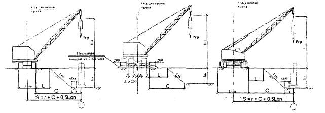 С - расстояние от основания откоса котлована до ближайшей опоры грузоподъемной машины;
