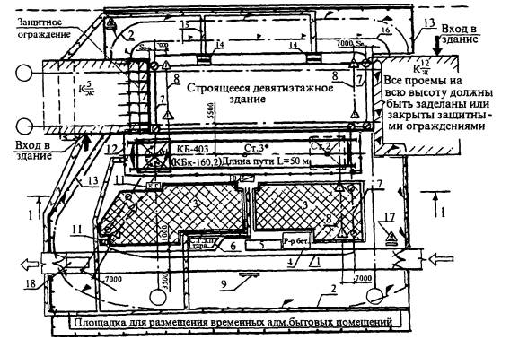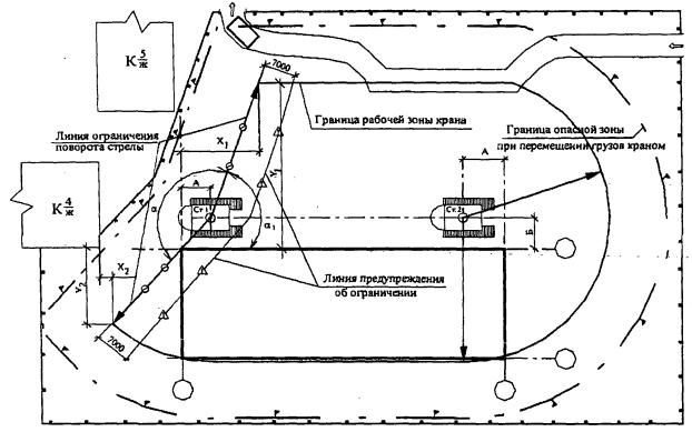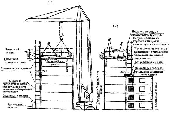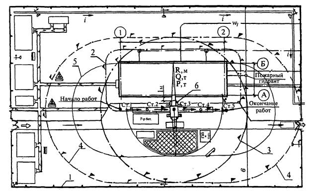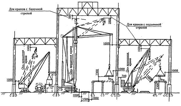 4.10. При привязке стреловых кранов, а также башенных кранов, имеющих подъемную стрелу, необходимо учитывать возможность монтажа конструкций, ближайших к крану; особое внимание при этом необходимо обращать на случаи, когда работа кранов ограничена.