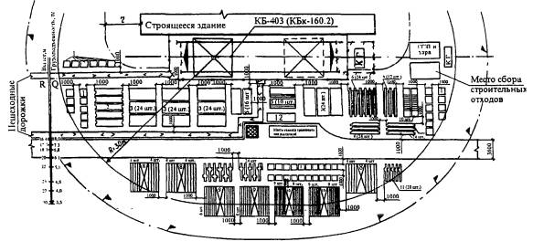 4.11. При привязке башенных кранов следует учитывать необходимость их монтажа и демонтажа, обратив при этом особое внимание на положение стрелы и расположенного вверху противовеса по отношению к возводимому знанию (сооружению). Во время монтажа и демонтажа этих кранов стрела и расположенный вверху противовес должны находиться над свободной территорией, т.е. не должны попадать на строящиеся или существующие здания и другие препятствия.