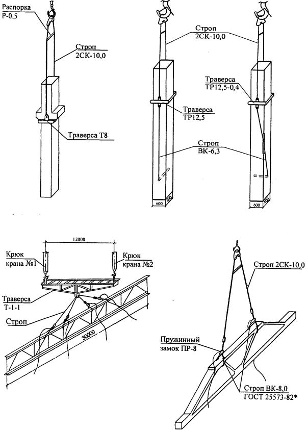 Примечание - При подъеме краном длинномерных конструкций (фермы, балки и т.д.) их необходимо удерживать от раскачивания и случайного разворота во избежание ударов по стреле с помощью гибких оттяжек.