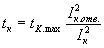 6.4.1.9. Наибольшую продолжительность короткого замыкания (tК.max) на зажимах трансформаторов следует принимать при коротком замыкании на сторонах с номинальным напряжением 35 кВ и ниже - 4с, при коротком замыкании на сторонах с номинальным напряжением 110 кВ и свыше - 3 с. 6.4.1.10. Допустимую продолжительность внешнего короткого замыкания tK, с, при протекании установившегося тока короткого замыкания менее наибольшего установившегося следует рассчитывать по формуле: