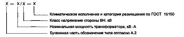 установки над уровнем моря - не более - температура окружающего воздуха и охлаждающей среды - климатическое исполнение У по ГОСТ 15150 и ГОСТ 15543.1; среднесуточная температура воздуха - не выше 30°С; среднегодовая температура воздуха - не выше 20°С; для трансформаторов с водяным охлаждением температура охлаждающей воды у входа в охладитель - не выше 25°С; - отклонение питающего напряжения от номинального, а также форма кривой напряжения, несимметрия фаз, отклонение частоты от номинальной должны соответствовать требованиям ГОСТ 13109; - степень загрязнения окружающей среды - по ГОСТ 15150 (все типы атмосферы); - внешние механические воздействия, в том числе для сейсмоопасных районов - по ГОСТ 17516.1; если максимальная амплитуда ускорения воздействия, приложенного к изделию в местах его крепления, не превышает 2,5 м/с2 (уровень вибрационных воздействий по ГОСТ 17516.1 - незначительный 1), то к трансформаторам не должны быть предъявлены специальные конструктивные требования; - категории размещения масляных трансформаторов и сухих герметичных трансформаторов - от 1 до 4, сухих негерметичных трансформаторов - 3,4 по ГОСТ 15150. По требованию заказчика трансформаторы могут быть предназначены для особых условий работы, которые необходимо учесть при проектировании трансформатора, например высота установки над уровнем моря, превышающая значение, указанное в 4.2.1; более высокая или низкая температура окружающей среды, в том числе для трансформаторов исполнений ХЛ и УХЛ по ГОСТ 15150; соответствующая тропическому климату влажность; сейсмическая активность; сильные загрязнения; нестандартные формы напряжения и тока нагрузки и смешанная нагрузка; особые условия транспортирования, хранения и установки (ограничение массы или габаритных размеров) и другие согласно ГОСТ 30830 (приложение А). 4.3. Виды систем охлаждения трансформаторов и их условные обозначения должны соответствовать приведенным в таблице 1. Таблица 1