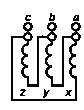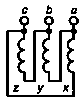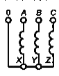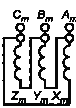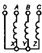 Рисунок Ж.5 - Маркировка трехфазного трехобмоточного трансформатора (YH/YH/D-0-5)