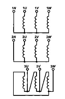 Линейные выводы обмотки трехфазного силового трансформатора следует обозначать буквами U, V, W, которые помещают перед цифрами, приведенными в Ж.2. Если необходимо, допускается помещать эти буквы также перед цифрами, приведенными в Ж.5 и Ж.6.