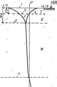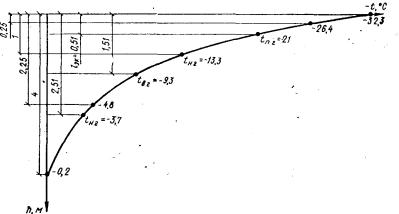 Рис. 14. Характер распределения температуры вечномерзлого грунта tгр по глубине