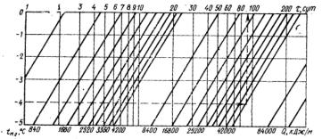 Рис. 39. Номограмма для определения затрат тепла на суммарное