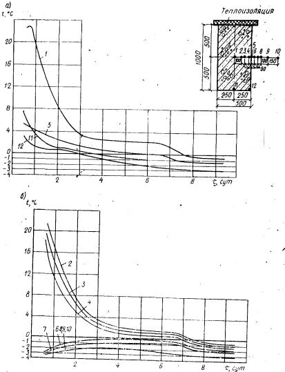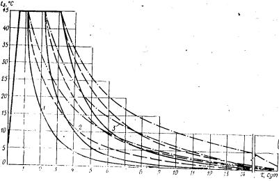 Рис. 16. Характер остывания конструкций, расположенных ниже