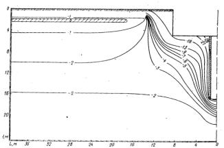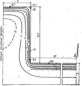 Рис. 20. Температурное поле в грунте вокруг котлована
