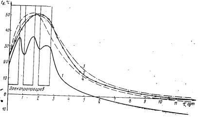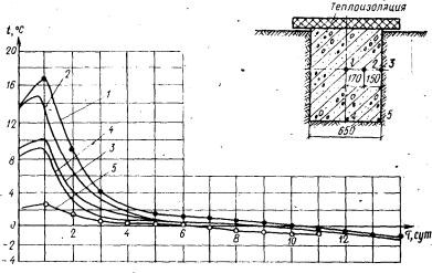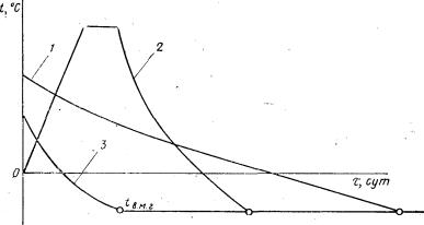 Рис. 55. Температурный режим остывания бетона, выдерживаемого