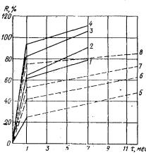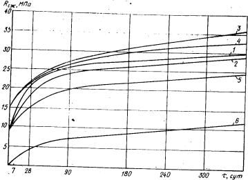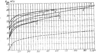 Рис. 33. Нарастание прочности бетона марки М 300 при различных