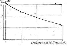 Рис. 29. Зависимость прочности водо-насыщенного песка, замороженного при -5°С, от концентрации в воде NaNO2