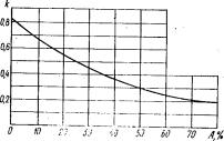 Рис. 38. График для определения коэффициента k qс.п - среднемесячная величина суммарной солнечной радиации, приходящей на горизонтальную площадку при общей облачности п баллов, Вт/м2. Значения qс.п берутся по данным актинометрических наблюдений ближайших метеостанций или из справочников по климату. Величину qс.п, Вт/м2, можно определить также по формуле qс.п = qс.о [1 - (a + 0,38 п )п], (50) где qс.о - среднемесячная суммарная солнечная радиация, приходящаяся на горизонтальную площадку при безоблачном небе. Значения qс.о принимаются по табл. 49; п - среднемесячные значения общей облачности в долях единицы; a - эмпирический коэффициент, значения которого приводятся в табл. 50. Таблица 49 Суммарная (прямая и рассеянная) солнечная радиация qc.o. при безоблачном небе, Вт/м2