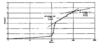 По данным таблицы строят индикаторную кривую в координатах ΔР÷Q (рисунок 6.2), на основе которой определяют коэффициент продуктивности, гидропроводность и проницаемость поглощающего горизонта по методикам, описанным в [36, 37, 39]. Критерием достоверности проведенных исследований является совпадение кривых, полученных при увеличении отборов (прямой ход) и снижении отборов (обратный ход) (не более чем 10 % различие коэффициента приемистости в любой точке кривых).