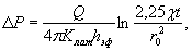 где Q - приемистость, м3/сут; χ - пьезопроводность, м2/сут; t - время эксплуатации, сут; r0 - радиус скважины или приведенный радиус нагнетательного узла, м. Ra рассчитывают по формуле