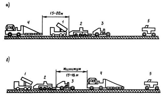 Рис. 2. Схемы нагрева основания при устройстве покрытия (а) и дополнительного подогрева уложенного слоя смеси в процессе его укатки (б): 1 - автомобиль-самосвал; 2 - асфальтоукладчик; 3 - каток; 4 - тепловая машина; 5 - каток на пневматических шинах 5.2. Асфальтобетонное покрытие с требуемыми показателями плотности, ровности и шероховатости может быть построено только при правильном подборе укладчика и уплотняющих средств (катков), а также при соблюдении технологии их работы с учетом ограниченного времени, отводимого на все операции по условиям остывания смеси (см. п. 4.2 и табл. 5). При времени остывания слоя смеси в покрытии менее 22-24 мин выполнить уплотнение с требуемыми показателями практически невозможно. В таких случаях рекомендуется увеличивать толщину раскладываемого слоя или принимать специальные меры по снижению скорости его охлаждения (укрытие слоя теплоизоляционным пологом и укатка смеси через него, использование катков с резиновым покрытием вальцов и др.) или, наконец, дополнительно подогревать чрезмерно остывший слой нагревательной машиной. В некоторых случаях возможно применение комбинированных мер. 5.3. Более длительное сохранение температуры смеси с целью повысить эффективность уплотнения на всех стадиях укатки возможно при использовании теплоизоляционных пологов*), представляющих собой брезентовые полотнища толщиной 1-2 мм и шириной, равной ширине укладываемой полосы смеси, длиной 15-20 м. .Прочность брезента на разрыв должна составлять 0,6-0,8 кН/см. *)Авт. свид. № 694574. Один отряд машин должен иметь 3-4 полога. Комплект теплоизоляционных пологов, свернутых на жесткой оси в рулон, крепится на специальных кронштейнах на асфальтоукладчике; по мере движения укладчика брезентовое полотно расстилается на уложенный слой смеси, что позволяет сразу же запустить в работу легкий или средний каток в зависимости от предварительного уплотнения смеси рабочими органами укладчика. После укладки первого полога в стык к нему расстилают следующий и так далее до закрытия всей длины захватки общего потока уплотняющих машин. По мере движения технологического потока вперед первый полог сворачивают вручную в рулон на жесткую ось и устанавливают на кронштейны асфальтоукладчика, что обеспечивает непрерывность технологического процесса. Для проведения этих операций в состав звена дополнительно включают двух рабочих 3-го разряда. Применение теплоизоляционных пологов позволяет: увеличить продолжительность укатки уложенного слоя асфальтобетонной смеси; повысить эффективность укатки слоя смеси благодаря возможности ее уплотнения при более высоких температурах без образования сдвиговых деформаций в виде трещин и разрывов слоя; исключить налипание смеси на холодные вальцы катков, что повышает качество поверхности покрытия. 5.4. При подборе укладчика и катков для работ с асфальтобетонной смесью в неблагоприятных погодных условиях рекомендуется руководствоваться следующими основными принципами и правилами: асфальтоукладчик должен иметь эффективно работающие уплотняющие рабочие органы (трамбующий и вибрационный брусья); при этом предпочтение следует отдавать высокопроизводительным укладчикам, способным раскладывать смесь на всю ширину дорожного покрытия или с минимальным количеством сопряжений (стыков) соседних продольных по