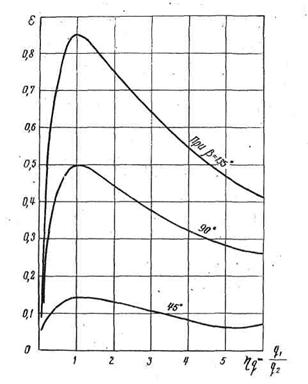 Рис. 3. График коэффициента гашения энергии ξ в зависимости от соотношения расходов взаимодействующих потоков