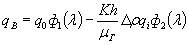 Здесь qi ,qr, qiy - соответственно дебит закачки (отбора) через скважины, дебит перетока через перемычку между верхним и нижним пластами, дебит утечек в вышележащие горизонты, дебит перетока во внешнюю зону. Из этих величин первый дебит считается заданной величиной, а остальные три связываются с разностью давлений в соответствующих зонах.