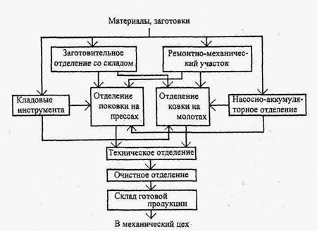 Рис. 1.3. Схема технологических потоков кузнечно-прессового цеха Таблица 1.2Характеристика кузнечно-прессового цеха