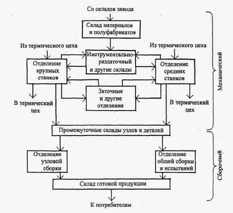 Рис. 1.1. Схема основных технологических процессов завода