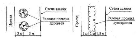 продольные оси фонарей и стен с проемами ориентируют под углом не менее 45° к преобладающему направлению летних ветров; в районах со снежным покровом 50 см и более продольные оси крупных зданий располагают под углом не более 45° к преобладающему направлению зимних ветров. Здания с полузакрытыми внутренними дворами допускается применять по условиям типологии, ширина двора должна быть не менее 15 м. Разбивочные оси противостоящих зданий должны совпадать. В решении генерального плана необходимо предусматривать применение наименьшего количества планировочных элементов, типоразмеров зданий, а также типов проездов и дорог. Автомобильные дороги проектируются исходя из грузооборота. При устройстве тупиковых автомобильных дорог в конце тупика предусматриваются петлевые объезды или площадки не менее 12×12 м для разворота автомобилей. К зданиям и сооружениям по всей их длине должен быть обеспечен подъезд пожарных автомобилей: с одной стороны - при ширине здания до 18 м и с двух сторон - при ширине более 18 м. При ширине здания более 100 м подъезд пожарных автомобилей обеспечивается со всех сторон. Расстояние от края проезжей части дороги, обеспечивающей подъезд пожарных машин, до стены должно быть не более 25 м. Ширину тротуаров надлежит назначать не менее 1,5 м. Площадь озеленяемых участков планируют не более 15 % от общей площади предприятия (рис. 1.8). Ширина участков озеленения принимается не менее 5 м. По условиям эксплуатации и охраны предприятия требуется ограждение его площади по всему периметру. Ширину ворот автомобильных въездов на территорию следует делать не менее 4,5 м, а для железнодорожных въездов - не менее 4,9 м. Благоустроенные площадки для отдыха и гимнастических упражнений следует делать из расчета не более 1 м2 на одного работающего в наиболее многочисленной смене. Входы в бытовые помещения нельзя располагать со стороны железнодорожных путей, проходящих вблизи от промышленного здания. Для разработки генерального плана завода студентам предлагается две схемы генерального плана (см. рис. 1.7). Каждый студент выбирает вариант схемы и после уточнения размеров цехов в плане (взаимный обмен информацией) разрабатывает генеральный план в масштабе, учитывая перечисленные выше требования. Дополнительные данные: Радиусы поворотов: грузовых автомобилей - 12 - 25 м; легковых автомобилей - 6 м; железнодорожных путей - 100 - 180 м; Покрытия: проезды - асфальтобетон; тротуары - тротуарные плитки, асфальт.