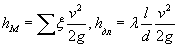 где ∑ξ - сумма местных коэффициентов на всем водоводе [4, 5, 7];