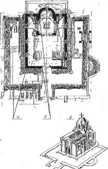 Рис. I. План-схема наложения фрагментов собора Мономаха и плана фундамента существующего собора по результатам инженерно-археологических изысканий.