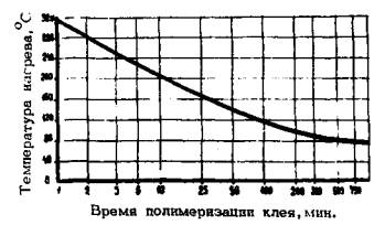Рис. 1. Зависимость времени полимеризации клея от температуры нагрева стержня 2.8. Чтобы уменьшить величину температурных напряжений в бетоне при нагреве арматуры, время нагрева до заданной температуры необходимо сократить до минимального. Рекомендуемое время нагрева - 1-3 мин. 2.9. Величину предварительного напряжения в арматуре sо при нагреве стержней до заданной температуры можно определить по формуле