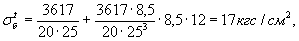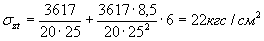 Проверяем величину наибольшего напряжения в арматуре: 6840 + 606 = 7446 кгс/см2 < 8000 кгс/см2.
