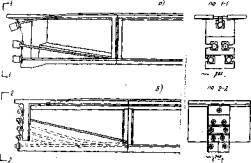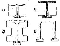 II. ОСОБЕННОСТИ КОНСТРУИРОВАНИЯ ЧЛЕНЕННЫХ БАЛОК§ 5. Члененные конструкций балок следует применять при затрудненных условиях погрузки, перевозки и разгрузки цельных балок. § 6. Максимальные размеры и вес блоков члененных балок определяются в зависимости от грузоподъемности имеющегося кранового оборудования и средств транспорта, так как укрупнение блоков и сокращение количества стыков повышает показатели жесткости конструкции. Предельный минимальный пролет балки для членения - 15 м. § 7. В члененных балочных конструкциях стыки, ближайшие к середине пролета, следует стремиться размещать в местах, где Мстык = Ммакс/Ктр здесь: Мстык - изгибающий момент в балке в месте стыка Ммакс - максимальный изгибающий момент посередине пролета Ктр - коэффициент запаса от раскрытия стыков, принимаемый равным коэффициенту трещиноустойчивости: Ктр = 1, 2 - при автомобильной нагрузке Ктр = 1, 1 - при гусеничной нагрузке Балки следует делить на нечетное количество блоков с максимально возможным отдалением стыков от середины пролета. § 8. Поперечине сечения члененных балок отличаются формой нижней полки /рис. 1/.