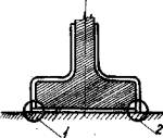 где Ктр - коэффициент трещиноустойчивости, Мтр - момент трещиноустойчивости, вычисленный по формуле: Мтр = sdWnd здесь: sd - предварительные напряжения в бетоне за вычетом напряжений от собственного веса, Wnd - момент сопротивления приведенного сечения, Мр - расчетный разрушающий момент, Мсв - момент от собственного веса. § 26. Нижняя полка балки рассчитывается на действие усилий, возникающих у корня консоли полки от собственного веса блока с увеличением на динамический коэффициент к = 1,5, который учитывает возможности удара при транспортировочных операциях. § 27. Основные положения по расчету и нормативные величины, необходимые при проектировании, общие для всех предварительно напряженных конструкций мостов, следует принимать в соответствии с "Временными техническими условиями на проектирование предварительно напряженных железобетонных мостов", 1952 г. с учетом "Технических условий на проектирование и изготовление предварительно напряженных железобетонных конструкций постов на железных дорогах нормальной колей", 1959 г. III. ИЗГОТОВЛЕНИЕ КОНСТРУКЦИЙ§ 28. Для обеспечения плотного соприкасания торцов блоков, соединяемых сухими стыками, бетонирование элементов должно производиться на общем поддоне для всей балки, но с чередованием бетонируемых блоков через один так, чтобы торец ранее наготовленного элемента служил опалубкой для торца последующего /рис. 8/.